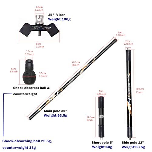 - Feature: Comprehensive stabilizer kit includes a 30″ main rod, two 12″ side rods, a 5″ extension rod, and a 35° V-bar seat.