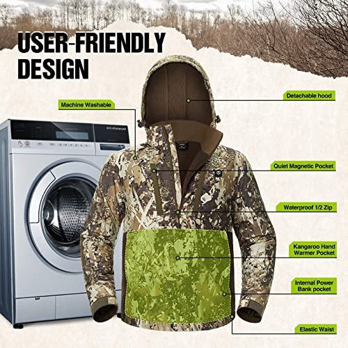 If you’re planning dawn-to-dusk sits or glassing in biting wind, this TIDEWE Men’s Heated Jacket hits the sweet spot: quiet, weather-ready, and built to keep your core comfortably warm without bulk. The 1/2 zip pullover design layers easily, the coral-fleece lining feels soft from the moment you pull it on, and the included battery pack powers targeted heat when the temperature drops. The Veil Avayde camo pattern blends naturally into a range of terrains, giving you concealment without sacrificing comfort or mobility.