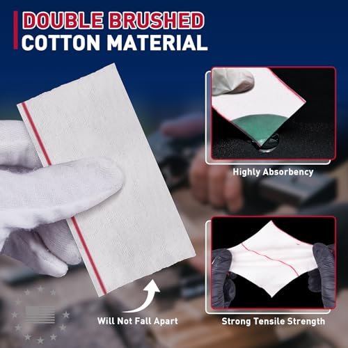 - Strong pure cotton cloth: Tightly woven, low-lint, and absorbent for solvents and oils.