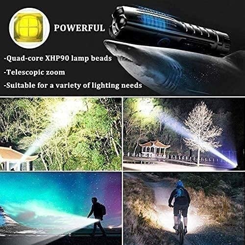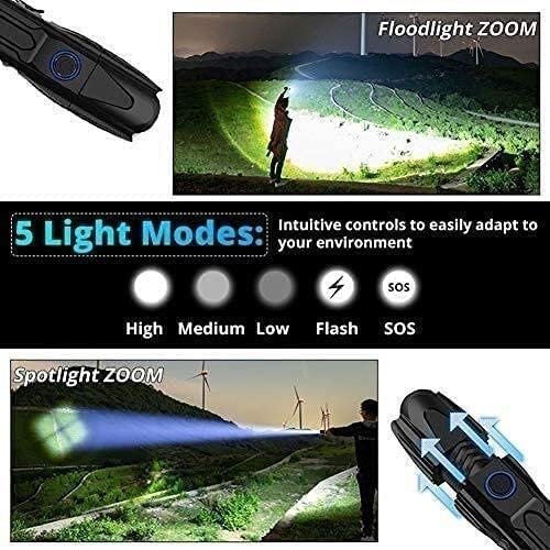 Own the night with a 5300-lumen, rechargeable tactical flashlight. Waterproof and rugged, it delivers 4 easy modes (High/Med/Low/Strobe)—ideal for camping, hiking, storms, and emergency readiness.