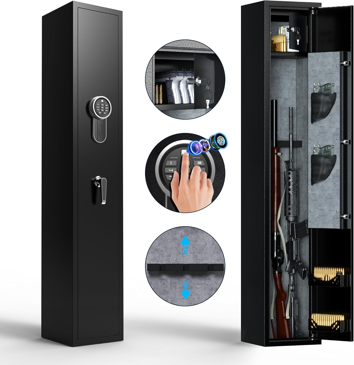 When considering a safe for your firearms, the METAN Rifle Gun Safe with Quick Access Fingerprint/Keypad Lock offers a sleek, secure, and versatile storage option. Designed to accommodate both rifles and pistols, this gun safe adds a layer of security and peace of mind to any household. From its biometric fingerprint accessibility to its robust construction, this safe is packed with features meant to safeguard your valuable firearms and other important items.