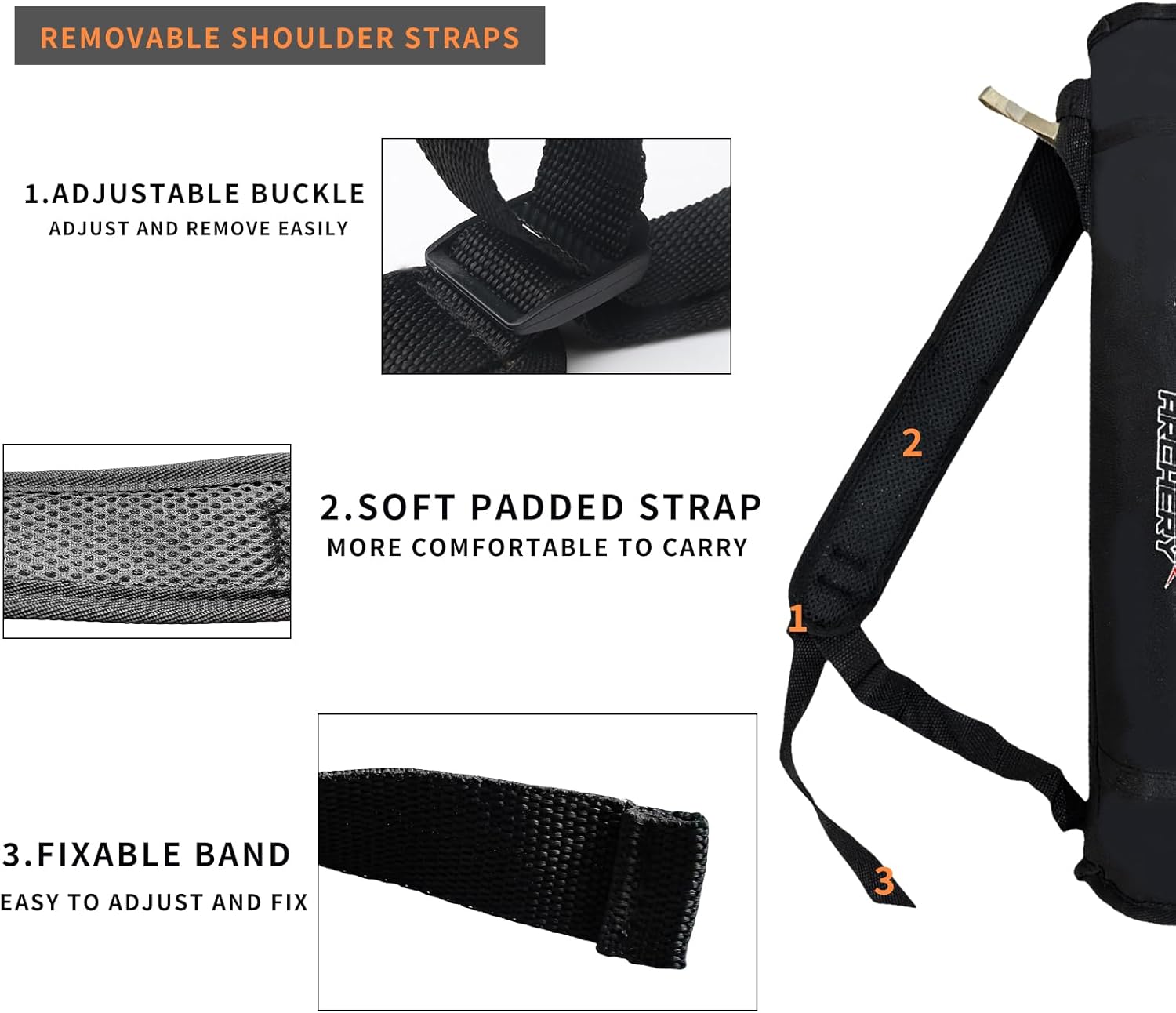 The Arrow Quiver boasts a padded shoulder strap that offers slip protection and extra comfort, making it ideal for extended use. The extra-hardened bottom prevents tearing from arrow points, ensuring the quiver remains intact even with frequent use. The breathable bottom design helps to prevent dirt and dust from clustering, keeping your arrows clean and secure. Made from high-quality polyester fabric, the quiver is wearproof and designed to withstand the rigors of archery excursions.