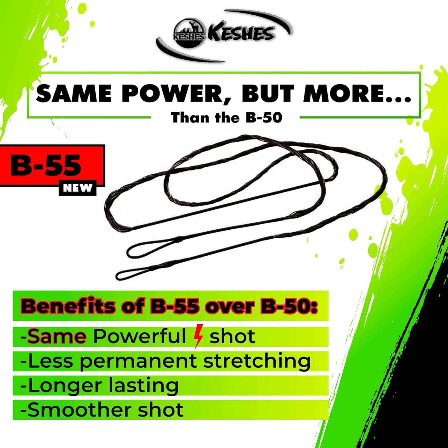 Both the B-55 and B-50 strings provide the same amount of stretch, giving powerful shots while maintaining a softer feel. This balance contributes to a consistent shooting experience, enabling optimal power delivery with each draw.
