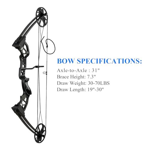 Adjustable Compound Bow Kit for Adults – 0-70Lbs Draw, 19-30” Length