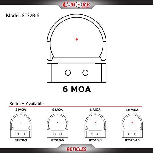 C-MORE RTS2 6 MOA Red Dot Sight with Rail Mount – Black, Precise Aim