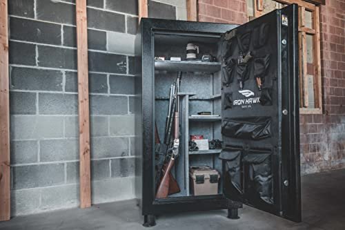 Protect your valuables with the Iron Hawk 36 Gun Safe: fire-resistant up to 1850°F, robust steel construction, and advanced electronic lock for ultimate security and peace of mind.