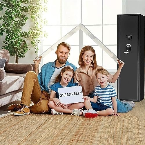 Protect your home with an upgraded electronic gun safe. Stores up to 4 rifles/shotguns plus a pistol, with quick-access keypad, durable steel body, and a space-saving cabinet to keep firearms secure yet ready.