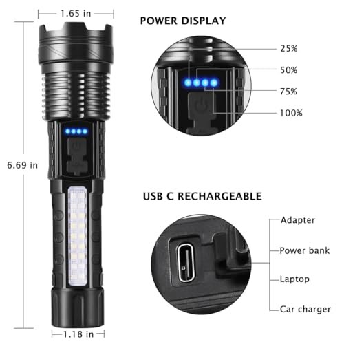 Illuminate your world with these ultra-bright tactical flashlights! 980,000 lumens, 7 versatile modes, and rechargeable power make these perfect for emergencies, camping, and outdoor adventures. Stay prepared, stay safe.