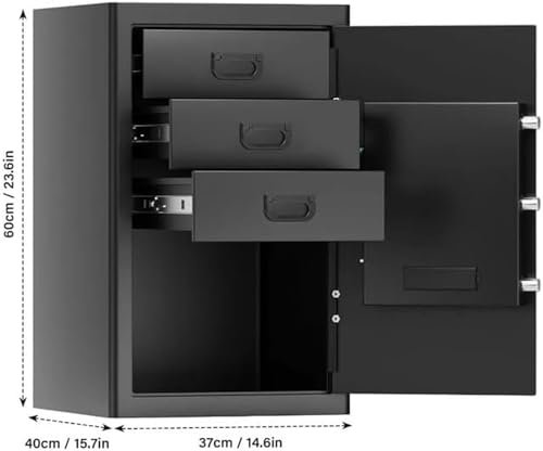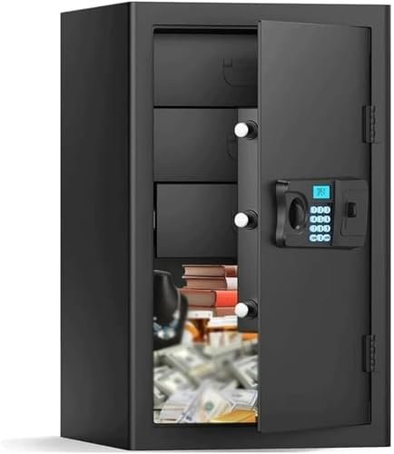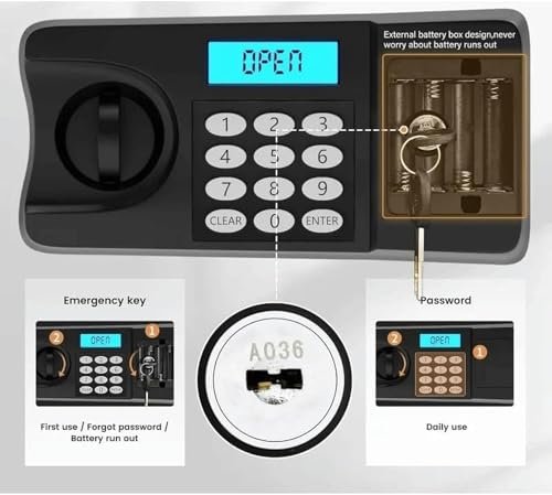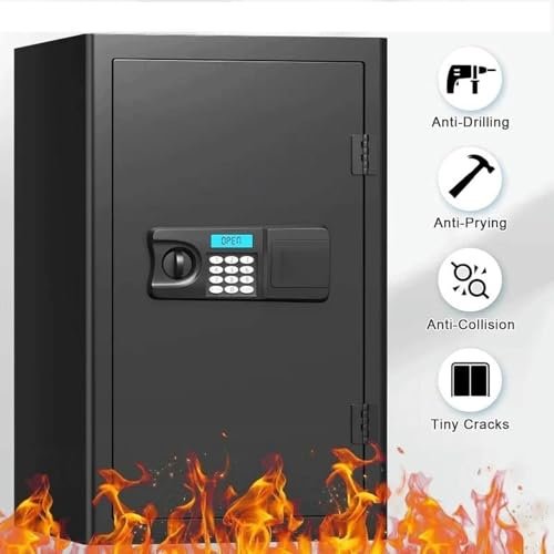 Keep files and valuables secure with the WRTYHGVGT Large File Safe: heavy-duty steel construction, spacious capacity, quick numeric keypad access, and a spare key backup – reliable protection for home or office.