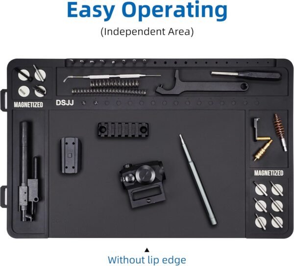 The built-in magnetic features securely hold your firearm and accessories in place, preventing any slips or accidental movements during cleaning. This ensures a stable and efficient work environment.
