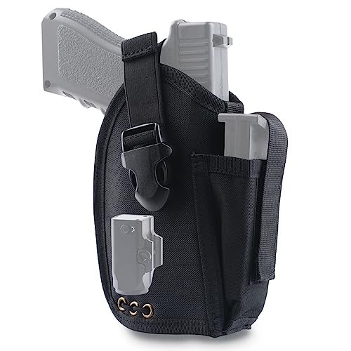 • Compatibility: Designed to fit many popular pistols configured with a flashlight or laser (check your specific model and accessory dimensions)