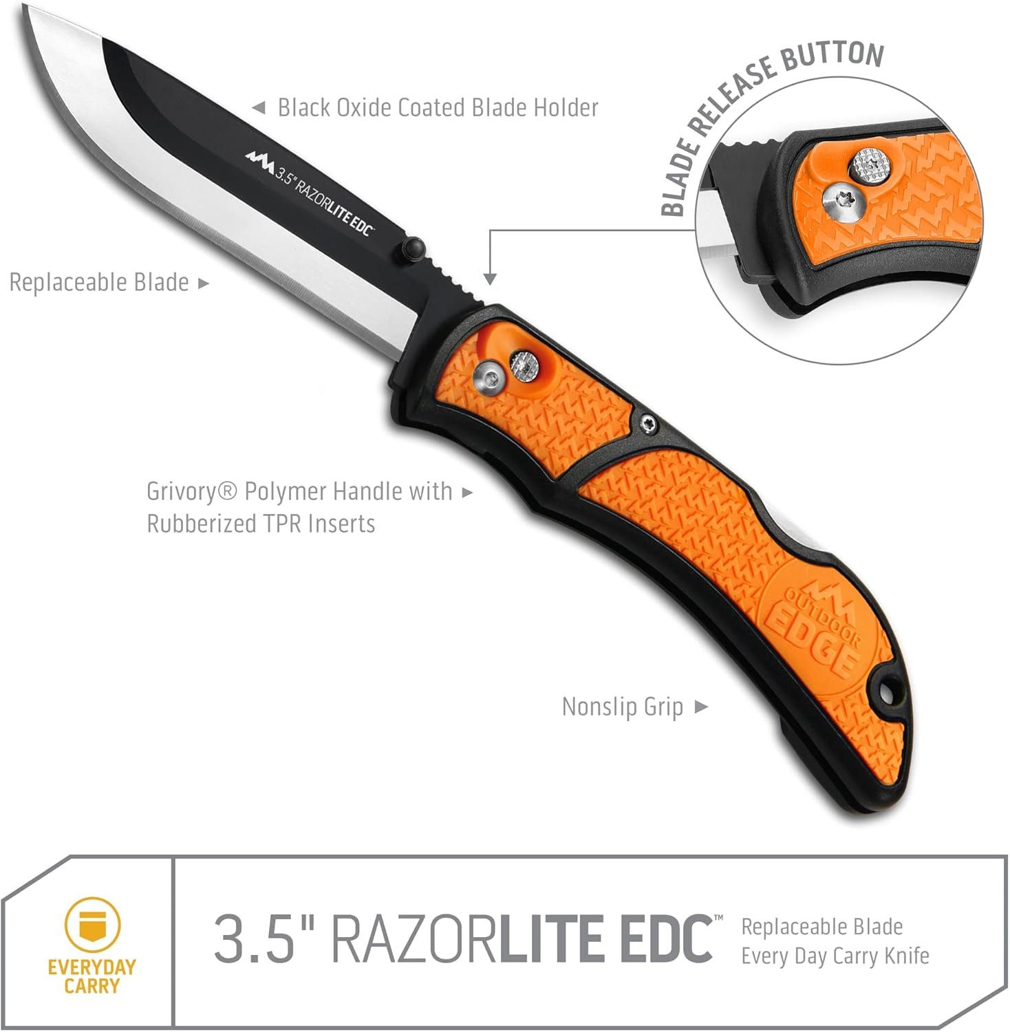 Outdoor Edge RazorLite EDC 3.5″ Folding Knife, Replaceable Blades, Hunting Tool