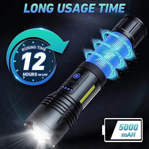 Let’s cut to the chase – this flashlight is an absolute beast when it comes to brightness. At 90,000 lumens, it transforms night into day with an incredibly powerful beam that cuts through darkness like a laser. We tested it in various conditions, from dense forest trails to pitch-black camping sites, and were consistently blown away by its performance.