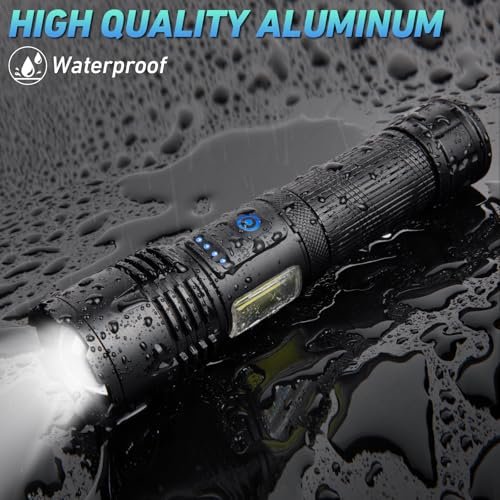 Illuminate any situation with this ultra-powerful 90,000-lumen LED flashlight. Waterproof, 7 versatile modes, and rechargeable—perfect for camping, emergencies, and outdoor adventures. Compact, bright, and built to perform when you need it most.