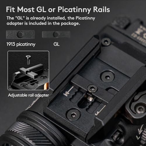 - Rail compatibility out of the box: adapters for GL (Glock) and 1913 Picatinny included, so it fits common pistols and long guns without extra parts.