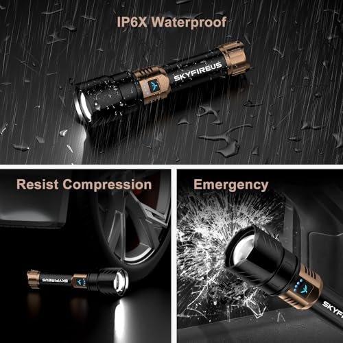 Light every adventure with SKYFIRE: a super-bright, high‑lumen, rechargeable tactical flashlight with Ignition Lens. Zoomable beam, 4 modes, and waterproof design—ideal for camping, outdoor tasks, home safety, and gifting.