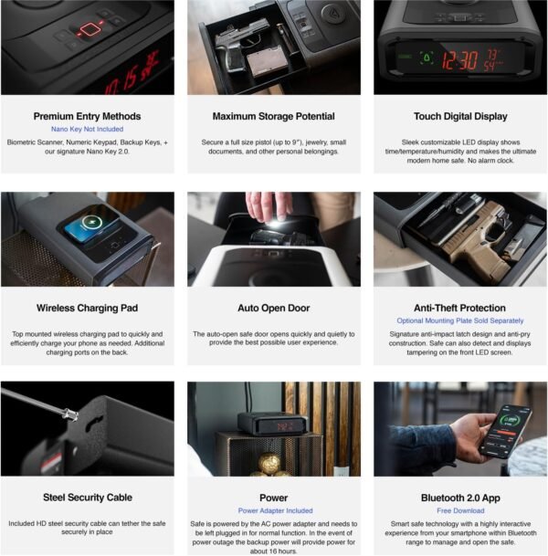 Smart Safe with Biometric Lock, Wireless Charger & Bluetooth Security