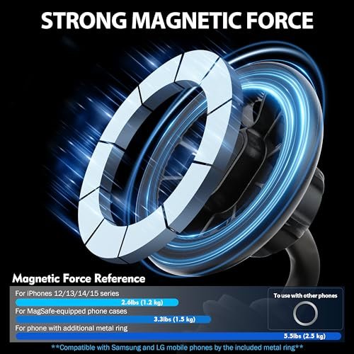 - Feature: Utilizes N52-Grade neodymium magnets for precise phone positioning with maximum magnetic force reaching up to 5.5Lbs (2.5 kg).