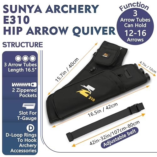 - Three Spacious Tubes: The SUNYA Hip Quiver comes with three arrow tubes, allowing you to carry up to 12 arrows comfortably. Each tube is designed to keep your arrows secure and organized.