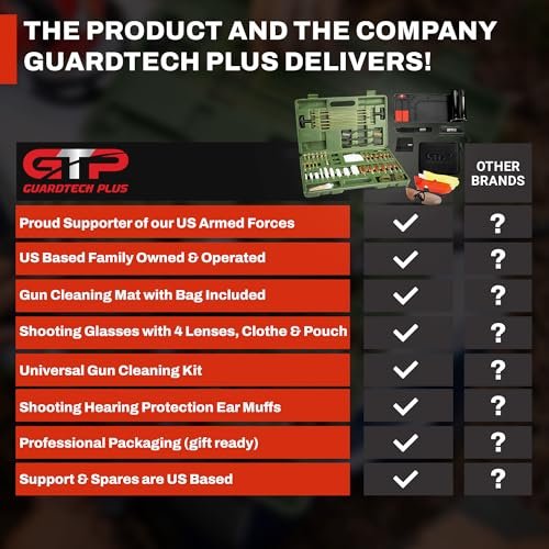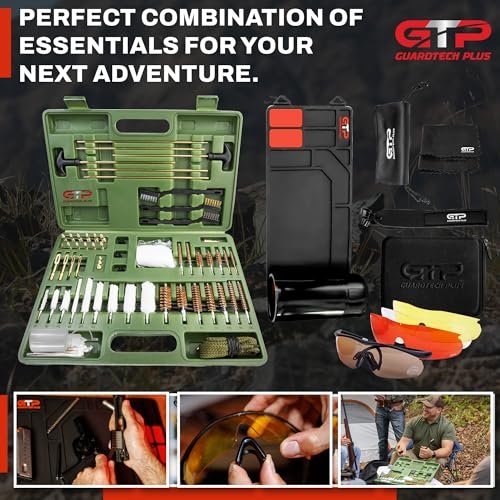 GuardTech Plus Ultimate Bundle: universal gun cleaning kit, non-slip rubber mat, and UV-protection shooting glasses—everything you need for safer, cleaner, precision maintenance. Fits pistols, rifles & shotguns.