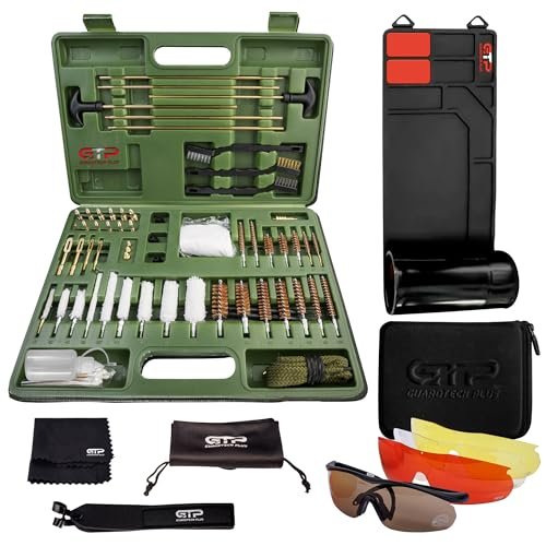 GuardTech Plus Ultimate Gun Care Bundle: Universal Gun Cleaning Kit, Rubber Gun Cleaning Mat, and Shooting Glasses with UV Protection