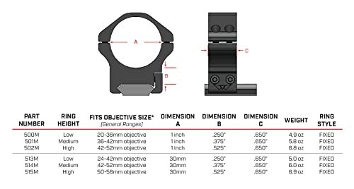 The Maxima Horizontal line is designed for shooters who want durable steel rings with straightforward setup and consistent hold. The horizontal cap split helps keep your scope level and reduces the tendency to rotate the tube while tightening. The Medium height is a versatile sweet spot for 1-inch scopes, often accommodating 40 mm objectives (and many 44 mm objectives) on typical rails with standard-contour barrels. The matte black finish keeps reflections down and matches most modern optics and receivers.