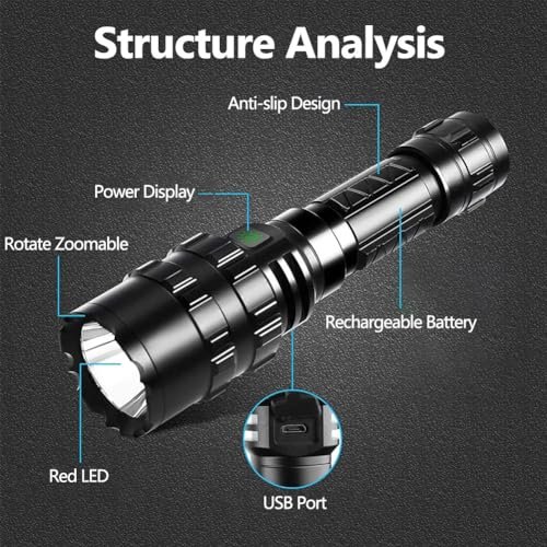Unleash powerful night vision with the WINDFIRE tactical flashlight: 1200 lumens, 5 modes, zoomable design perfect for hunting, astronomy, and outdoor adventures. Waterproof, rechargeable, and built for precision.
