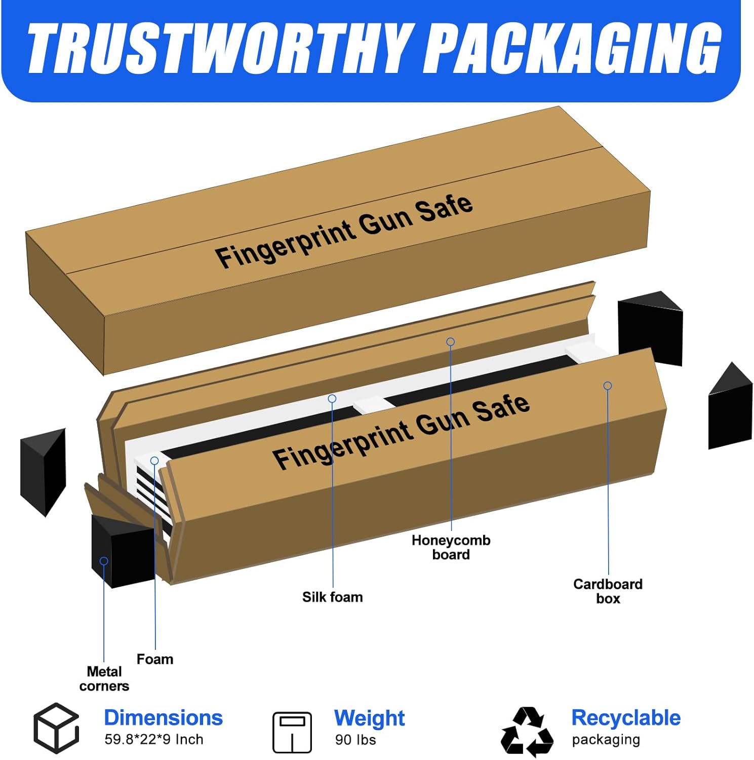 Four Unlocking Methods: Offering multiple ways to open the safe—including fingerprint, code, emergency key, and an emergency battery box—it provides added convenience and ensures you can always access your firearms.